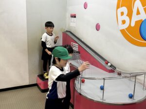 そして1番の楽しみだった宇宙トレーニング室に入ると「すごーい!」と大興奮!惑星ジムという迷路みたいな遊具で体を沢山動かしたり、鏡の部屋や錯覚の部屋などもあり貴重な体験がたくさんできました!